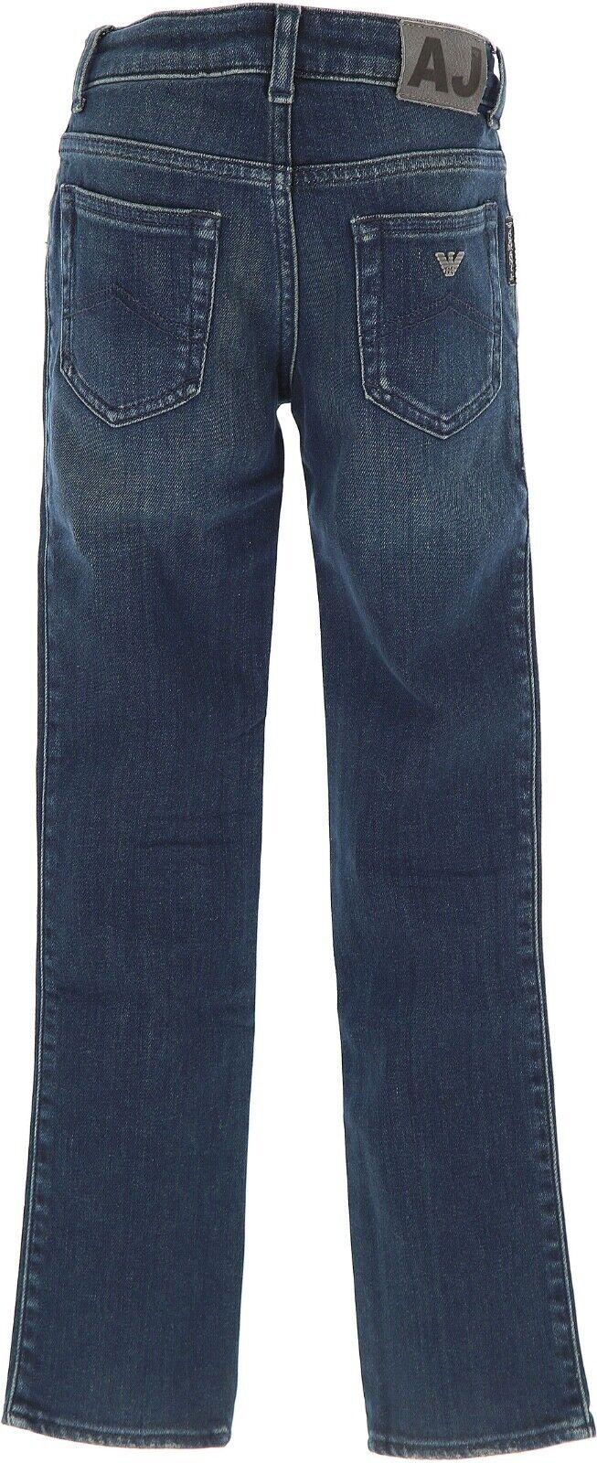 Jeans a 5 tasche Armani Junior in denim stretch, Design casual-vintage, Denim stretch, Vita media, Passanti per cintura, Chiusura centrale con bottone, 5 tasche, Tasche bull davanti, Tasche a toppe dietro.