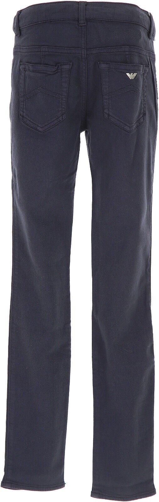 Emporio Armani Kids, pantaloni bambina blu, stile casual, modello a cinque tasche, regular fit, cotone stretch, vita regolare, passanti per cintura, chiusura con bottone e zip, logo posteriore applicato, gamba dritta, orlo dritto.