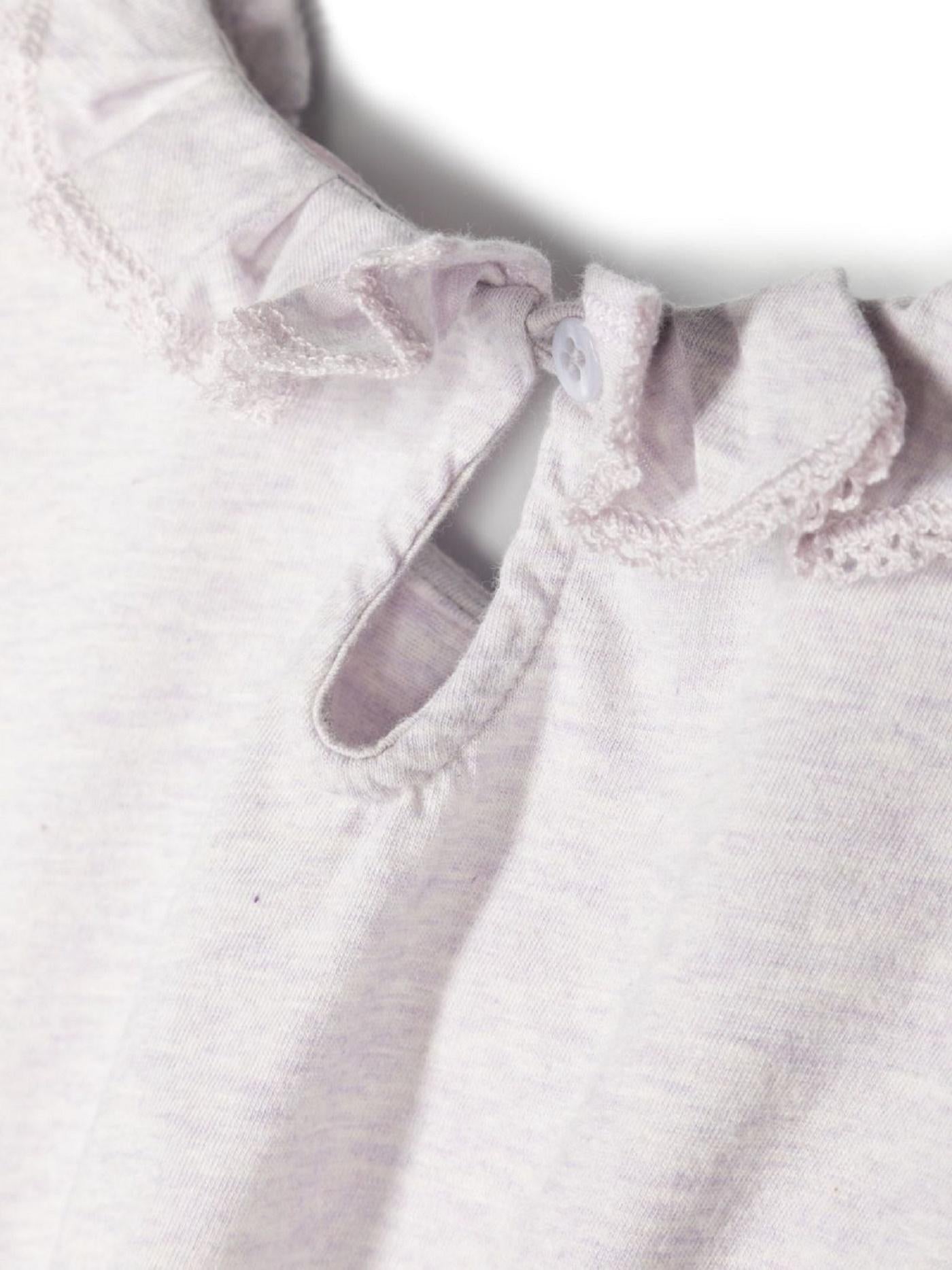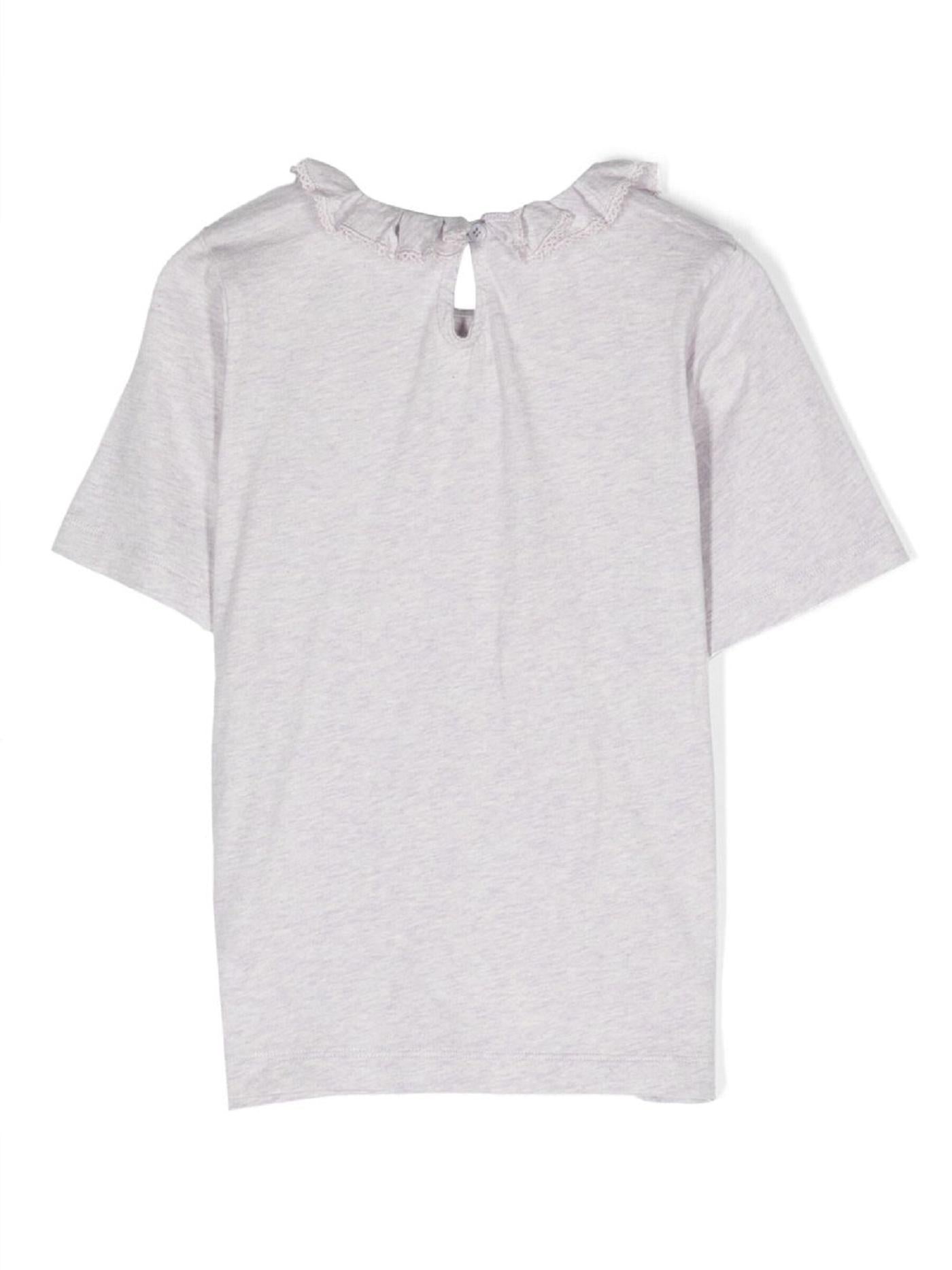 Bonpoint, t-shirt da bambina Clea con uno stile originale. Presenta un colletto a pieghe, dettagli in pizzo e una chiusura a goccia sul retro, ricamo ciliegia sull'orlo, scollo rotondo maniche corte. Composizione: 100% cotone.
