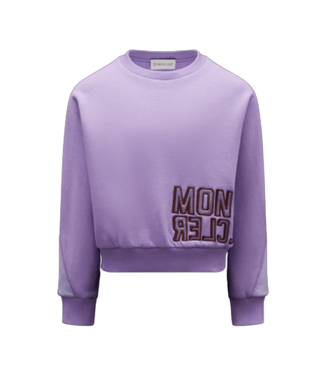 Moncler kids, viola, girocollo, maniche lunghe, orlo a coste, logo ricamato. Composizione: cotone 100%. Istruzione per il lavaggio: lavare in lavatrice