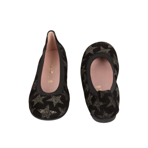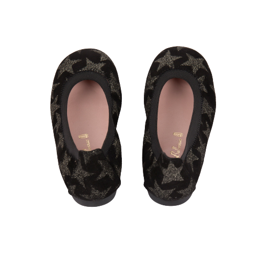 Pretty Ballerinas Kids, Ballerina morbida con suola in gomma flessibile e bordo elasticizzato, stelle all-over, nero.