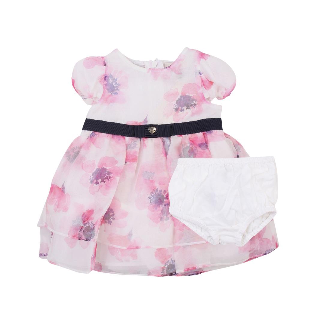 Emporio Armani Kids, stampa fiori, cintura blu con gioiello logo, mutandine incluse.