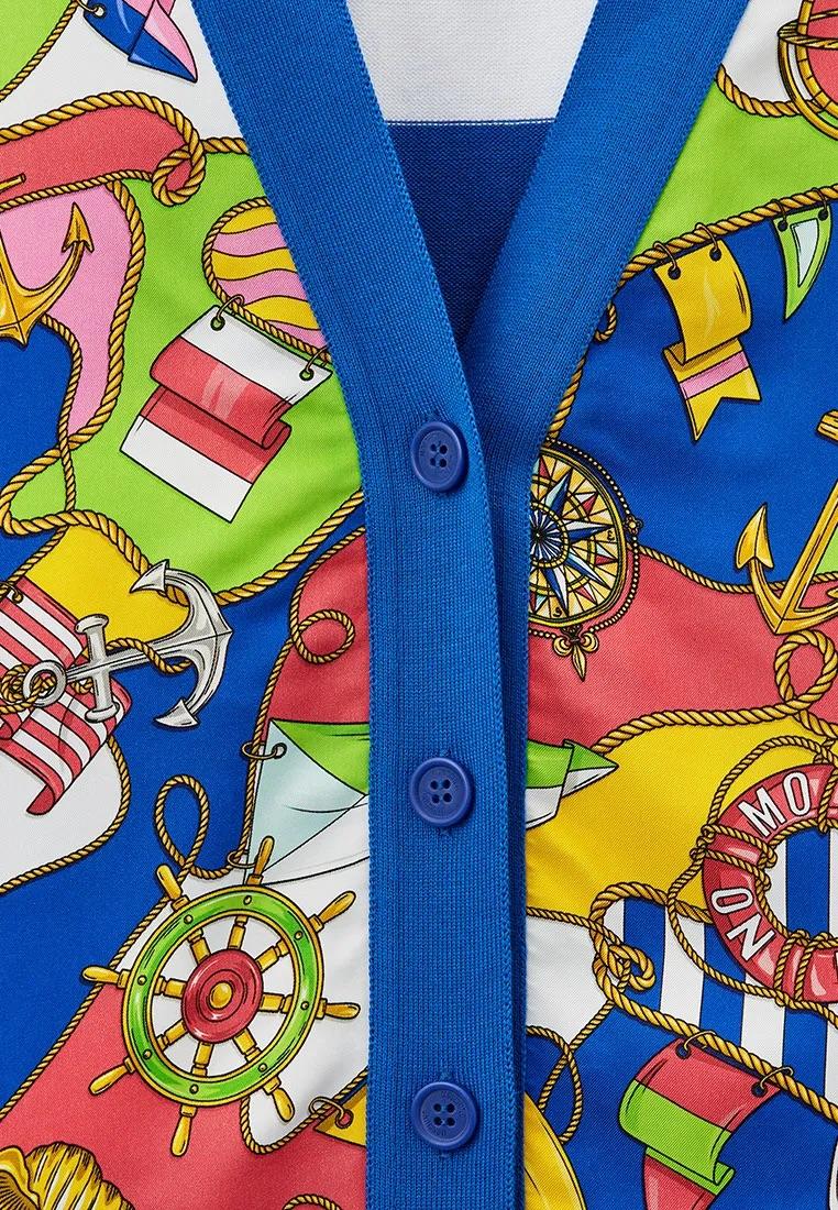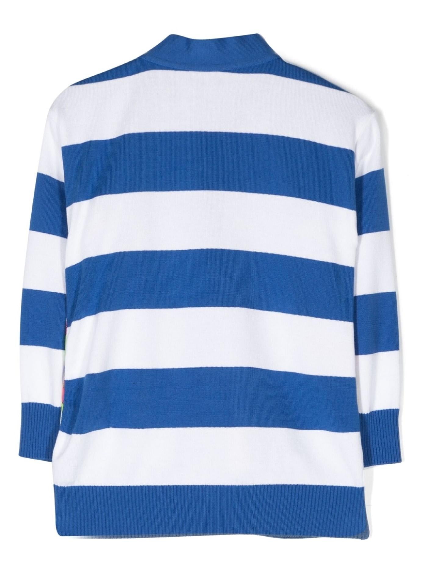 Moschino Kids, blu, multicolore, motivo a righe orizzontale, scollo a V, chiusura frontale con bottoni, maniche lunghe e orlo dritto. Composizione: viscosa 100%, cotone 100%
