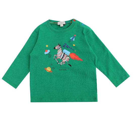 Paul Smith Kids, T-shirt verde neonato maniche lunghe, chiusura con automatici sulla spalla. Cotone