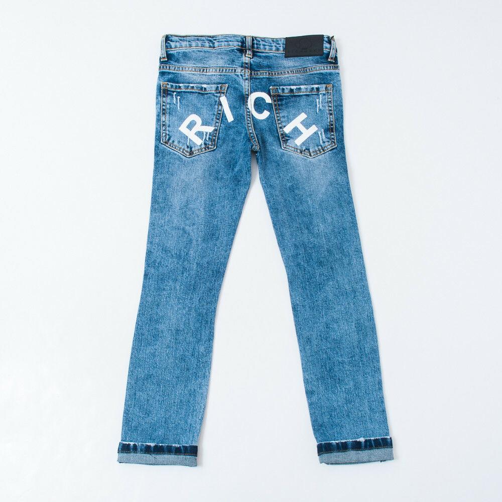 John Richmond Kids, jeans in misto cotone con stampa Rich sul retro, classico design cinque tasche.