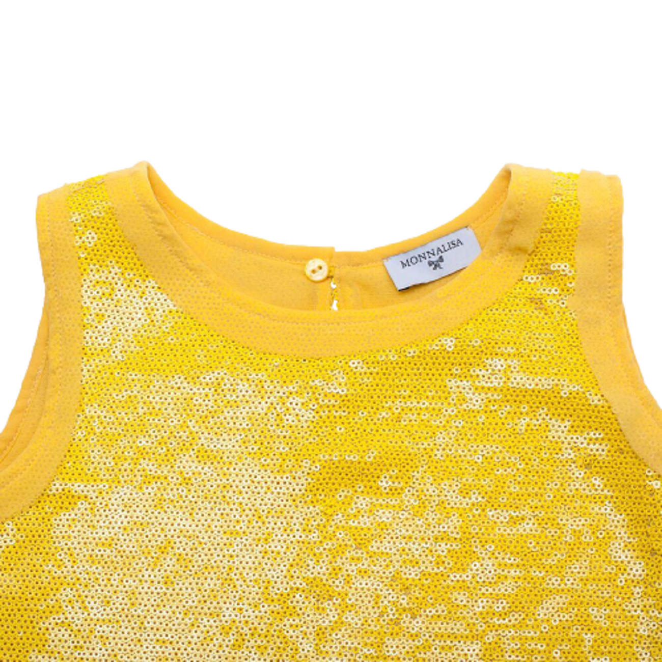 Monnlisa Kids, Canotta gialla con paillettes, smanicatta, giallo,paillettes, chiusura con bottoni sul retro.