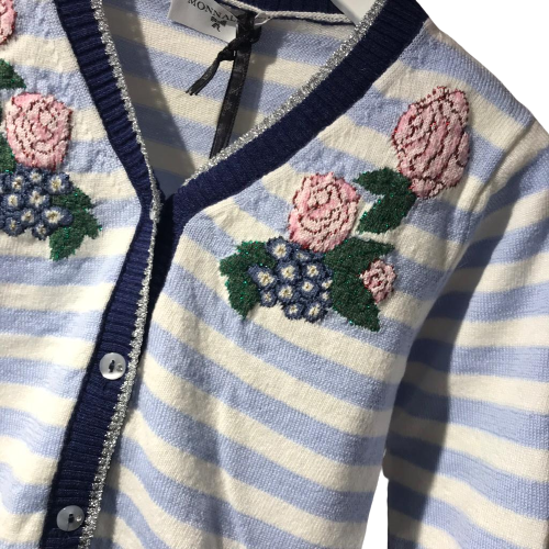 Monnalisa Kids, cardigan con righe e fiori, chiusura con bottoni sul davanti.