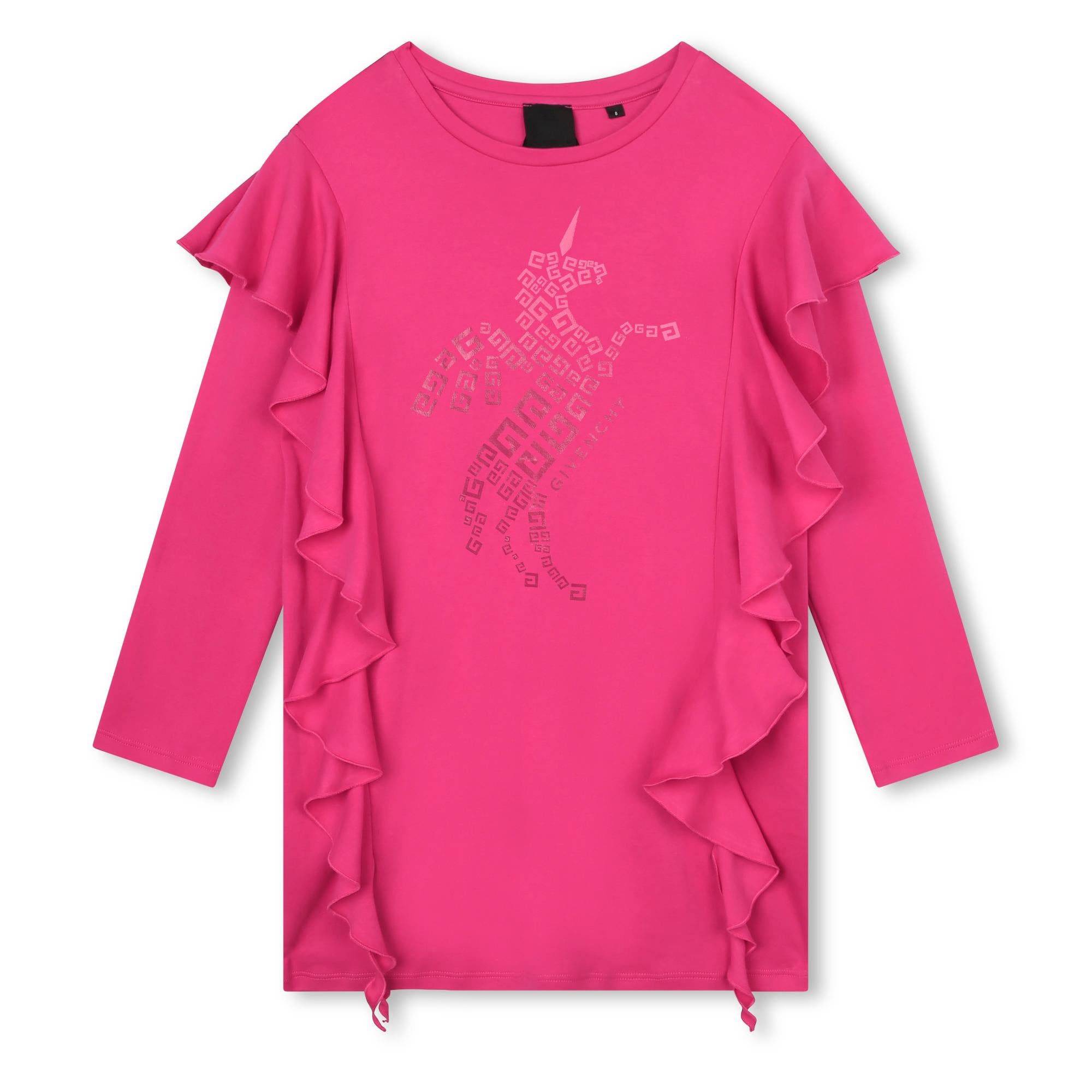 Givenchy Kids, rosa shocking, cotone, dettagli con ruches, stampa con logo sul davanti, scollo rotondo, maniche lunghe e orlo dritto. Composizione: cotone 100%