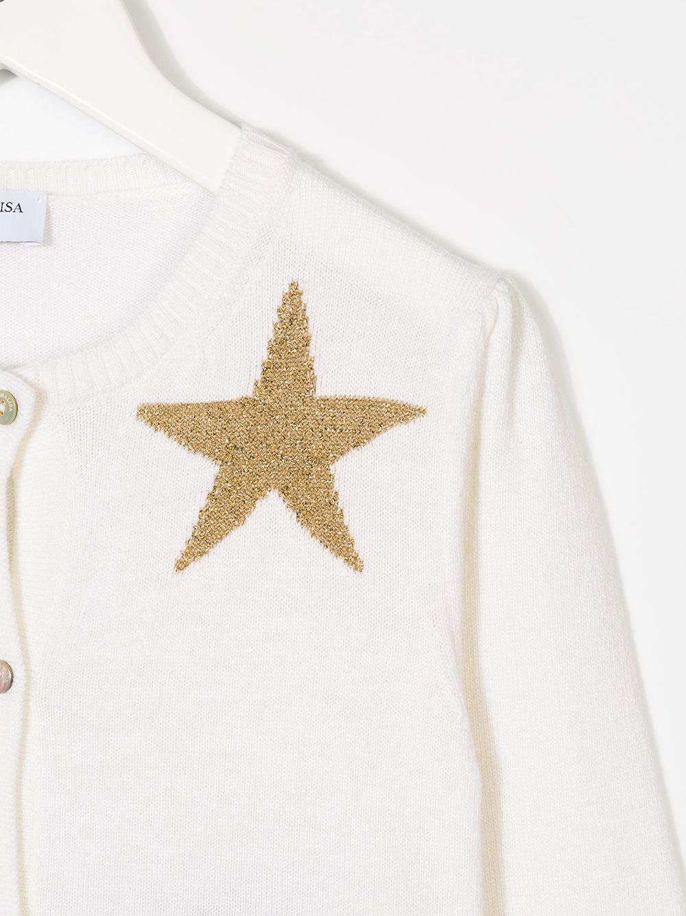 Monnalisa Kids, Cardigan con stelle all-over, polsini e fondo cardigan blu a contrasto, stelle. Chiusura con bottoni sul davanti.