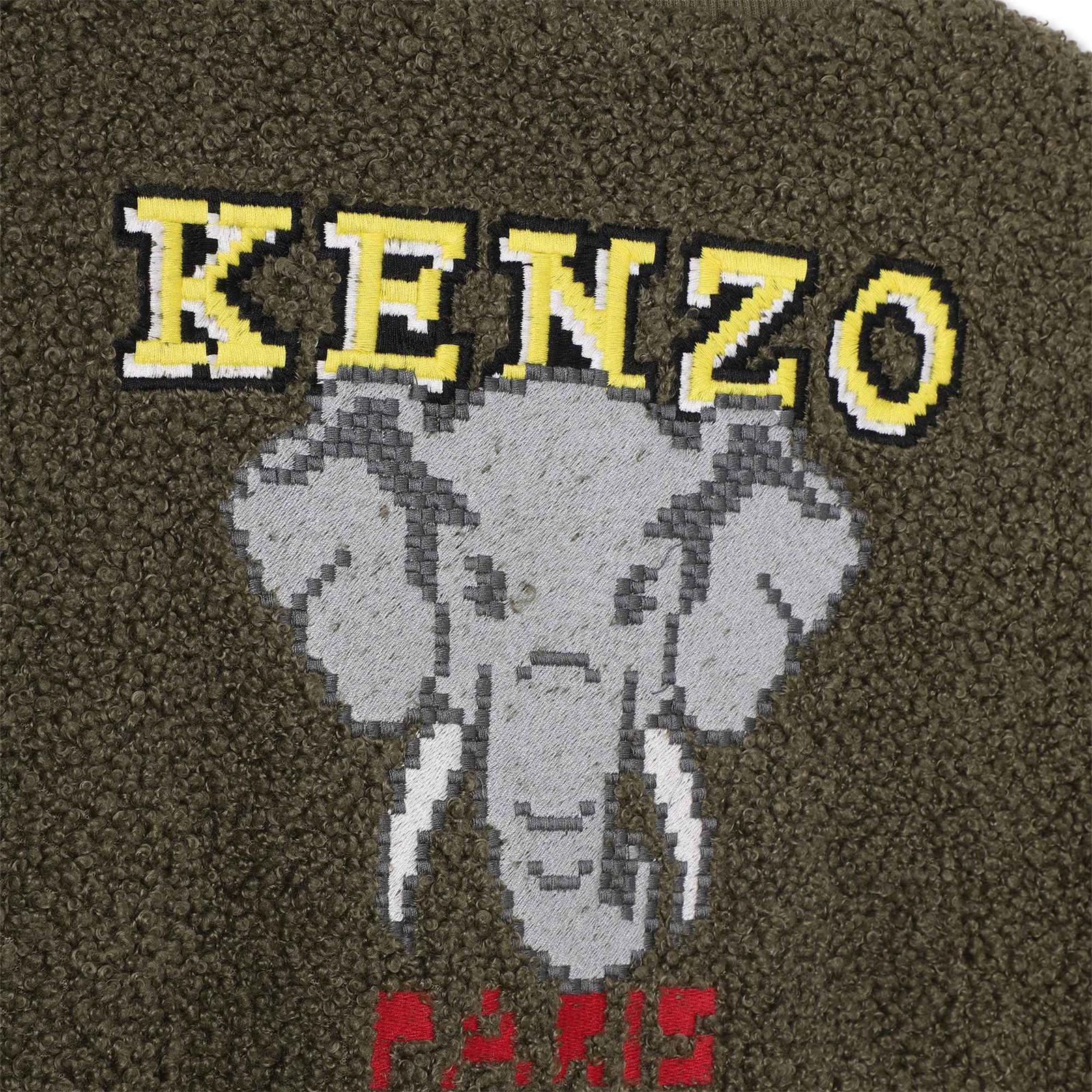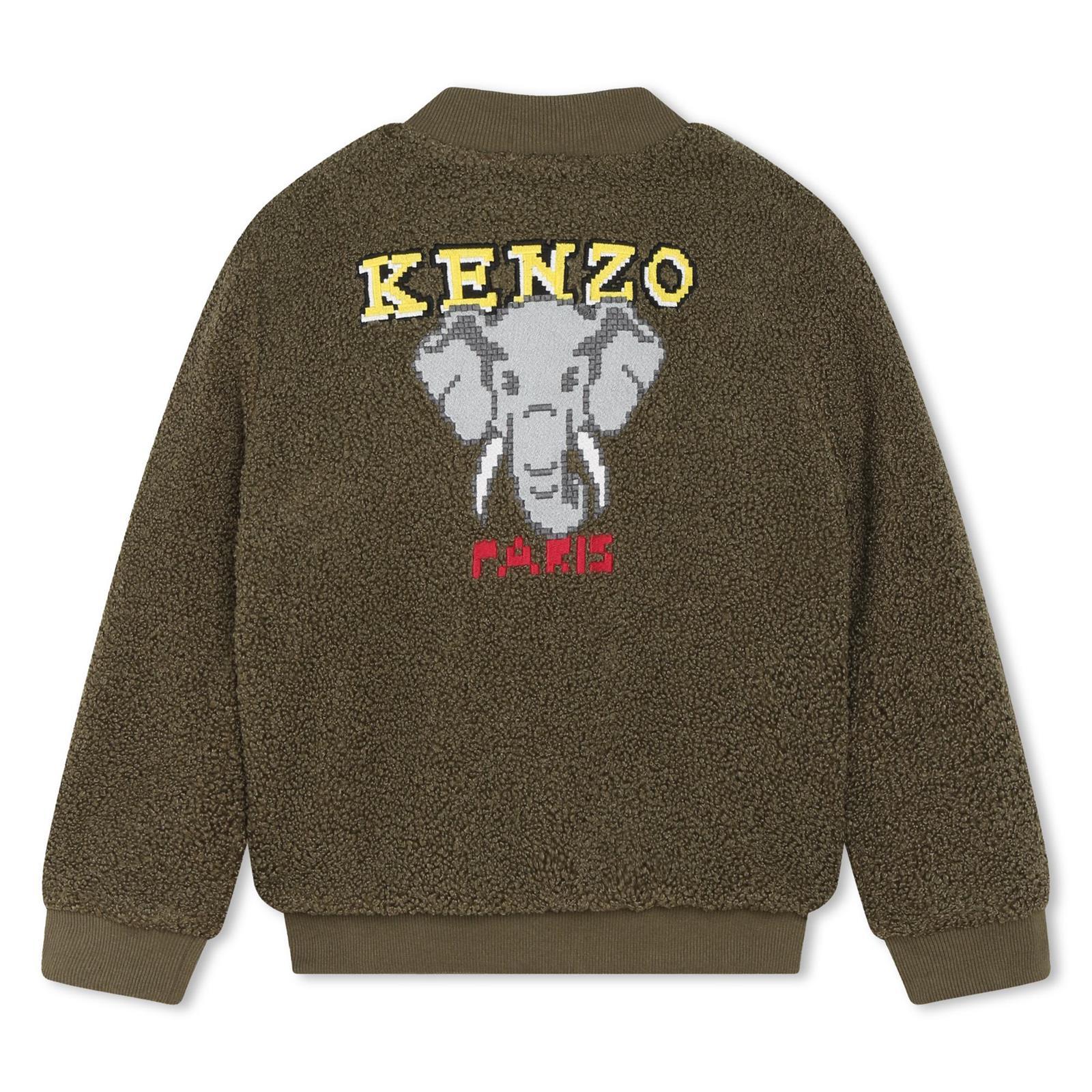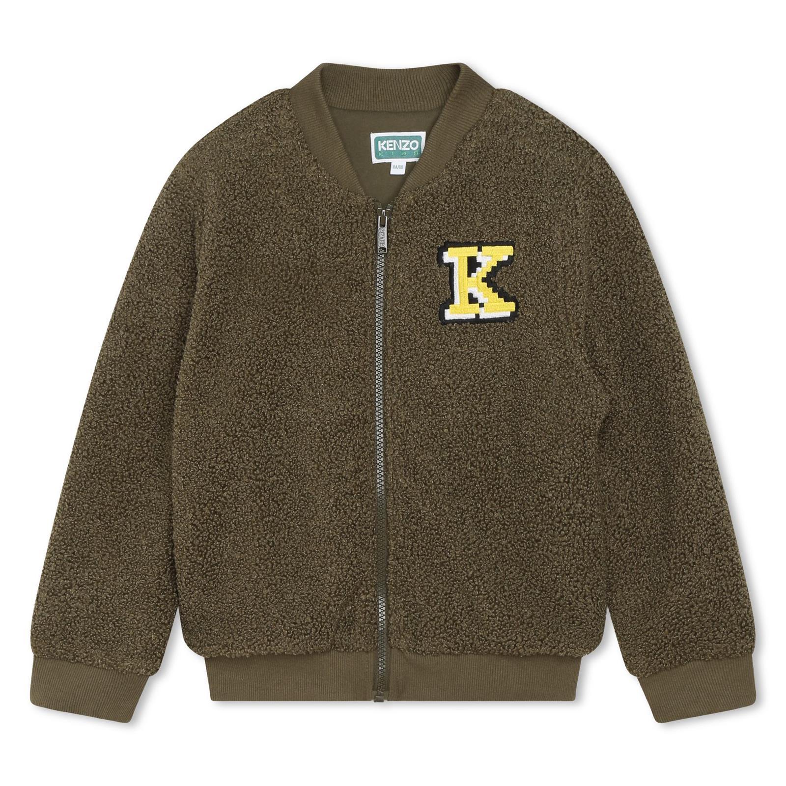 Kenzo Kids, cachi, shearling cruelty-free, logo ricamato, colletto rialzato, chiusura frontale con zip, maniche lunghe e due tasche con inserti. Composizione: cotone 95%, elastam 5%