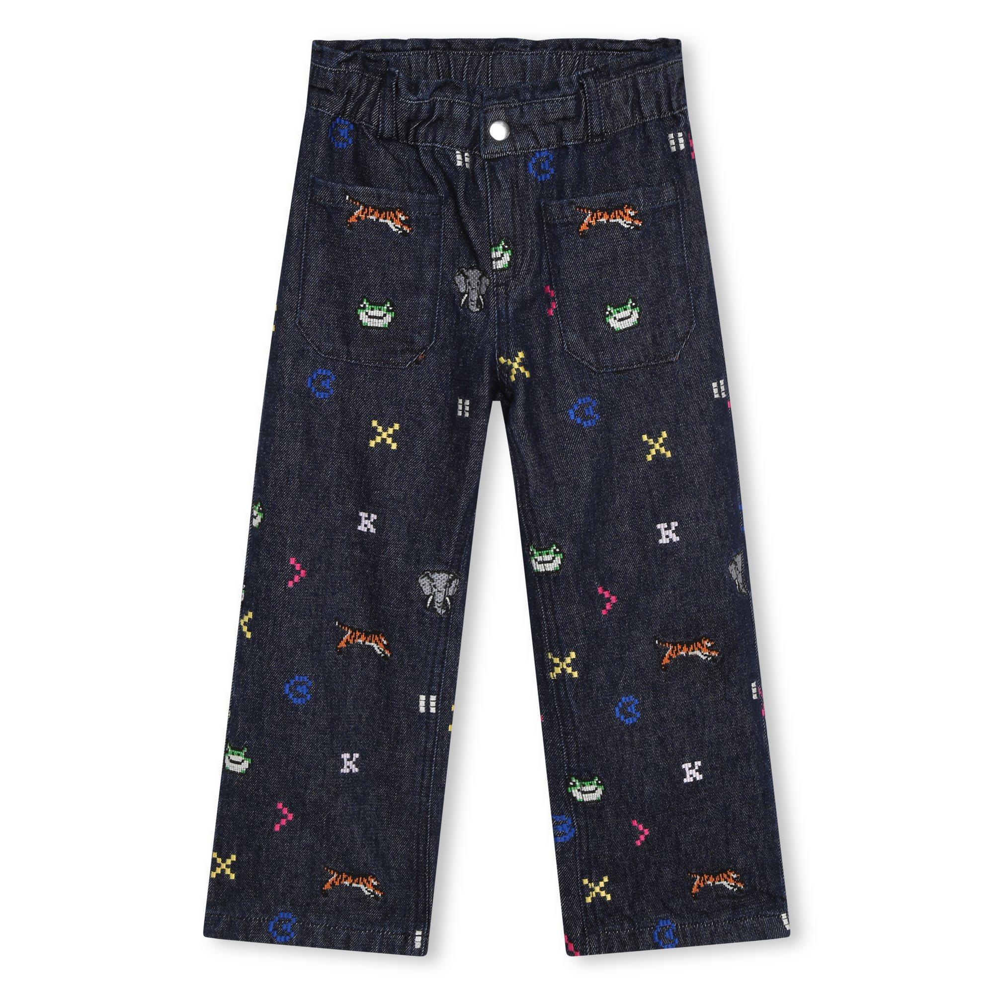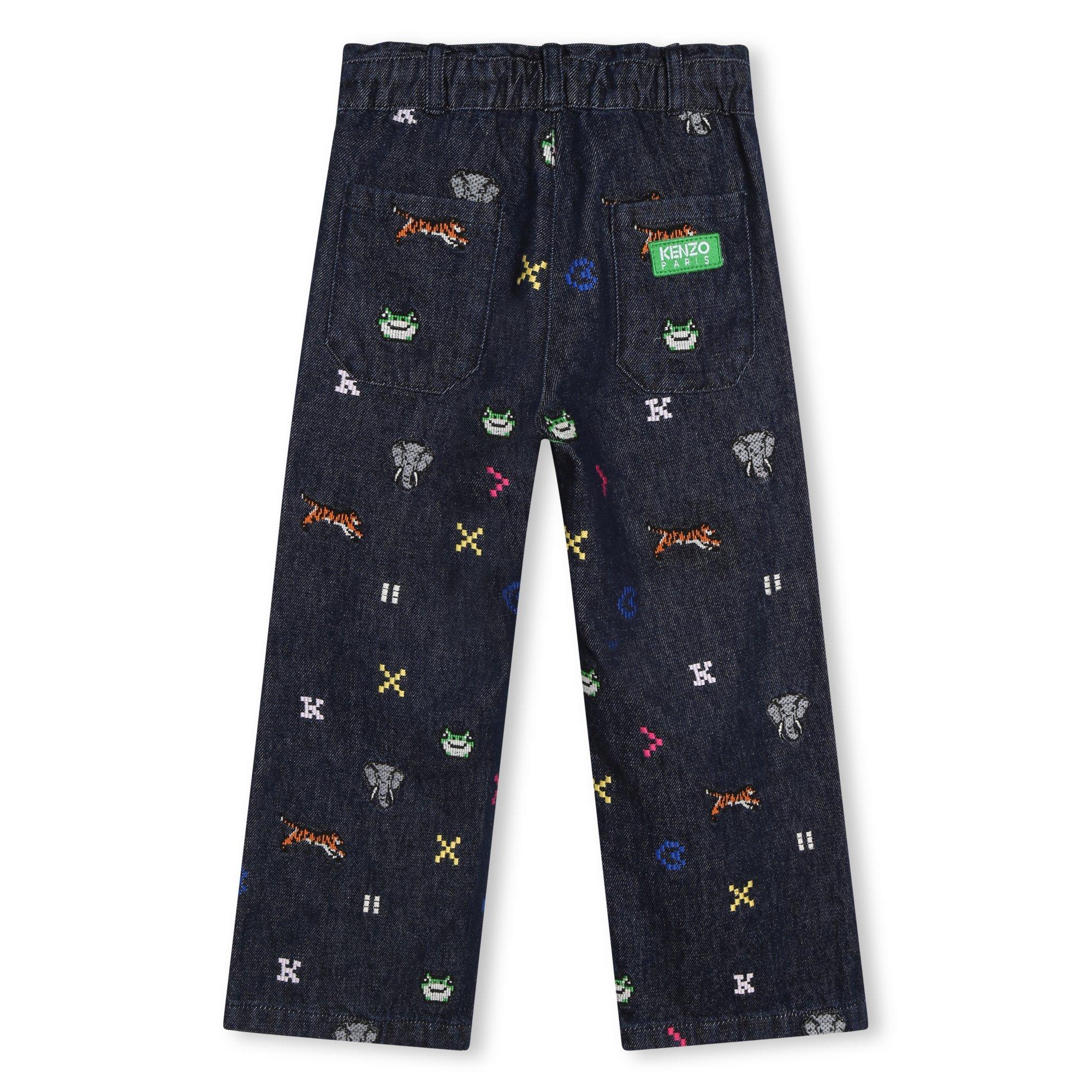 Kenzo Kids, indaco, cotone, design ricamato, applicazione posteriore con logo, chiusura con bottone e zip nascosta, due tasche posteriori applicate, taglio straight e orlo dritto. Composizione: cotone 100%