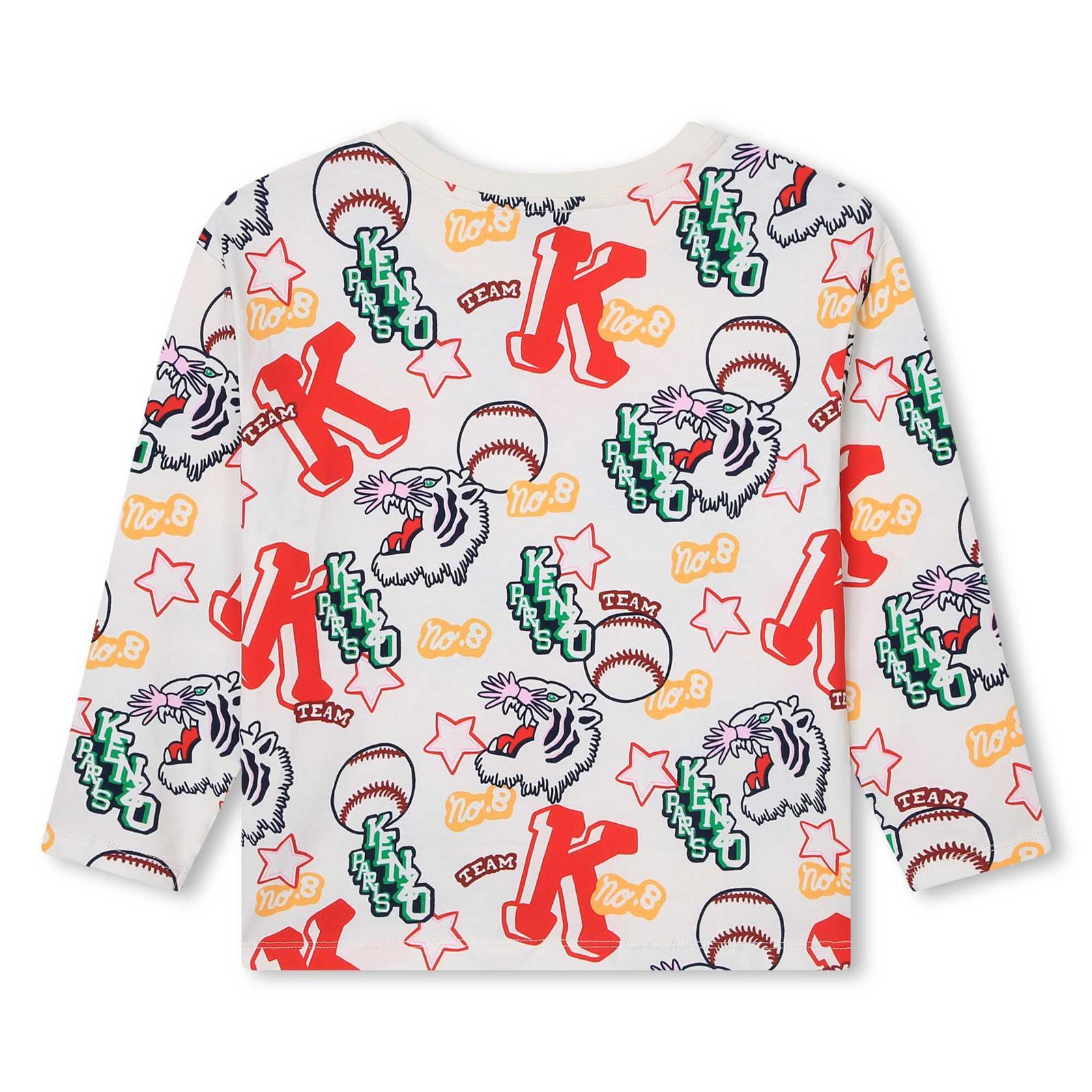 Kenzo Kids, tonalità bianco avorio, multicolore, stampa grafica all-over, scollo rotondo, maniche lunghe e orlo dritto. Composizione: cotone 95%, elastam 5%