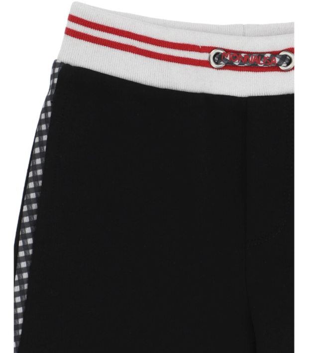 Monnalisa Kids, felpa, piping laterale, elastico in vita con profili a costine, dettaglio finta coulisse scritta Monnalisa, stampa gommata rossa a rilievo, taschina profilata sul retro. Composizione: 100% Cotone.