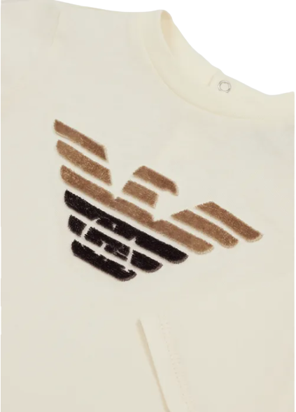 Emporio Armani Kids. Bianco opaco, cotone, ricamo con logo frontale, scollo rotondo, maniche lunghe e chiusura posteriore con bottone. Cotone 100%, Poliestere 100%. Lavare a mano.