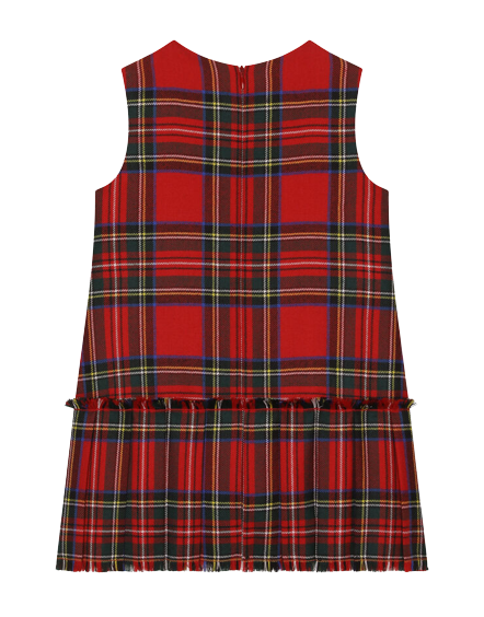 Dolce & Gabbana Kids. Rosso scuro, multicolore, motivo tartan, dettaglio badge, logo ricamato, senza maniche e orlo svasato. Esterno: Lana Vergine 100%, Poliestere 100%. Fodera: Viscosa 100%. Lavare solo a secco.