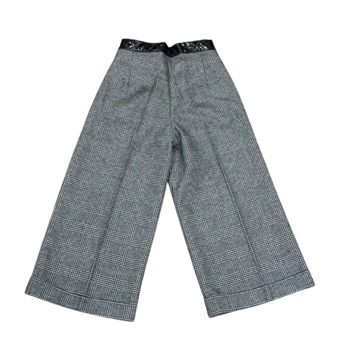 Ermanno Scervino Kids, Pantaloni ampi bambina , tasche. Nero/bianco, vestibilità gamba ampia, fantasia pied-de-poule, modello a vita alta, passanti, chiusura frontale con bottoni e zip e due tasche laterali a filetto.
