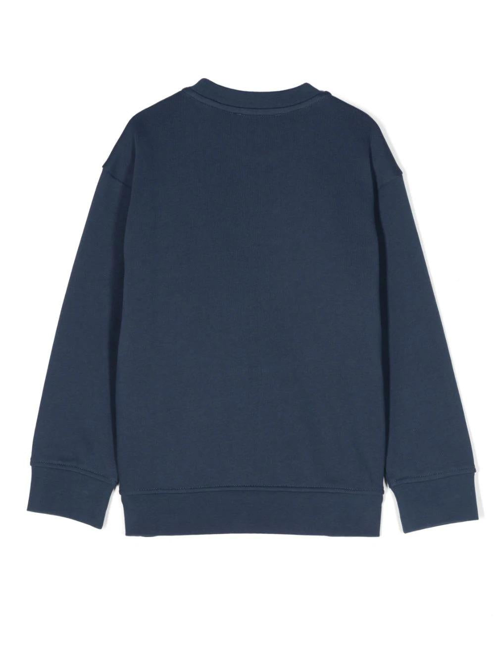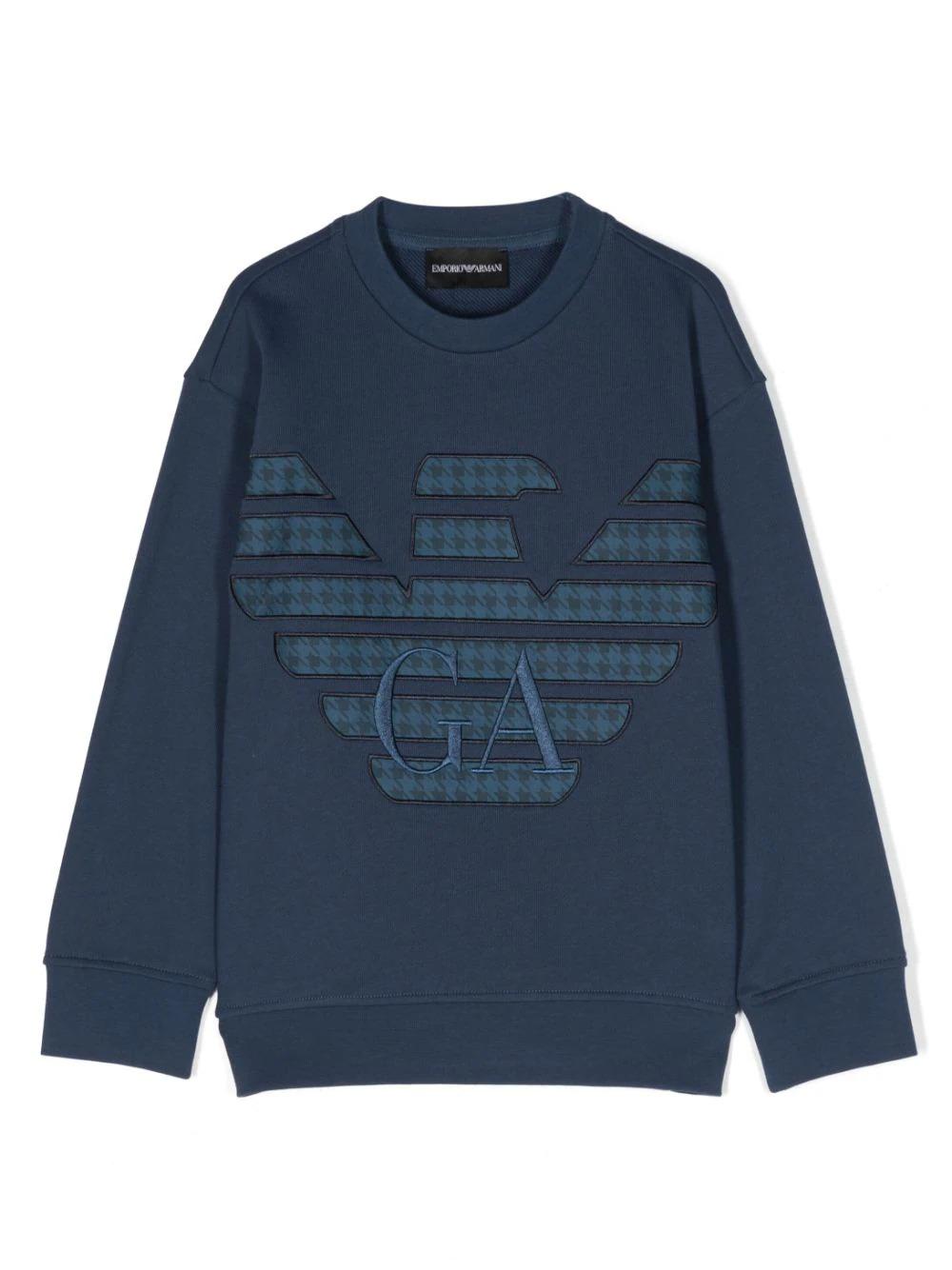 Emporio Armani Kids. Felpa con applicazione logo. Blu navy, cotone, applicazione frontale con logo, ricamo con logo frontale, maniche lunghe e girocollo. Composizione: cotone 100%, poliestere 100%