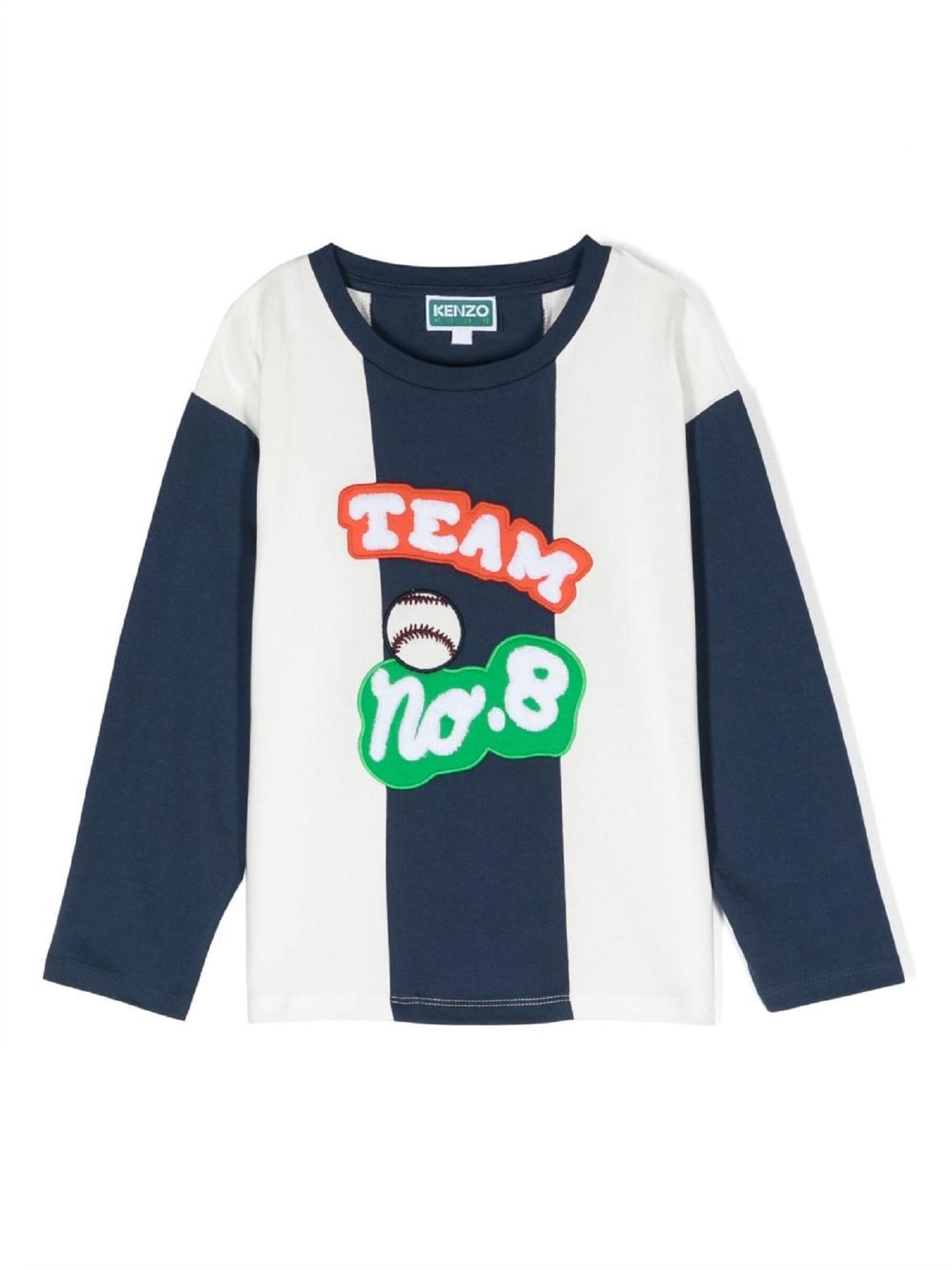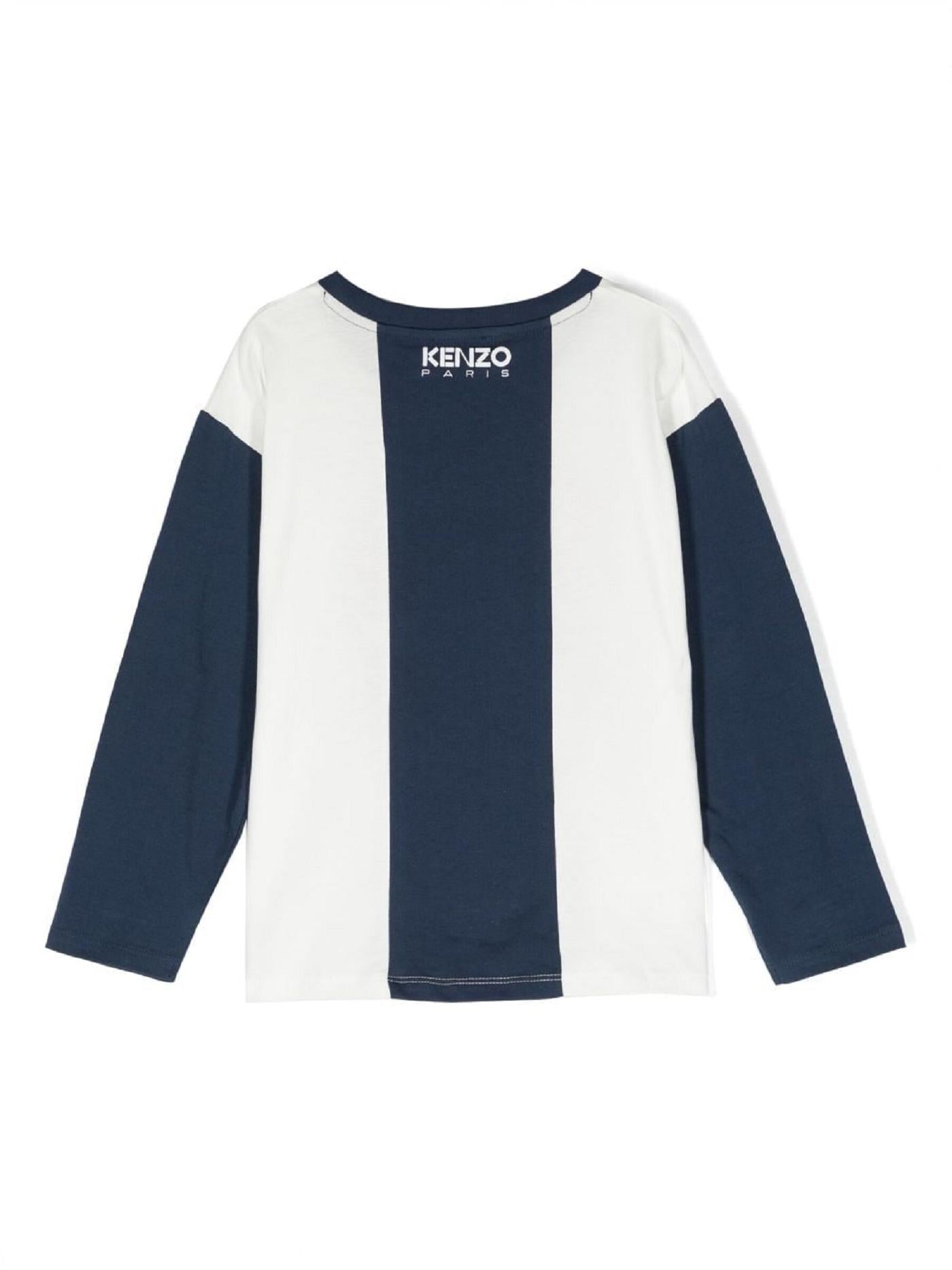 Kenzo Kids, blu navy, bianco, cotone, lavorazione in jersey, motivo a righe verticali, girocollo, maniche lunghe e orlo dritto. Composizione: cotone 100%