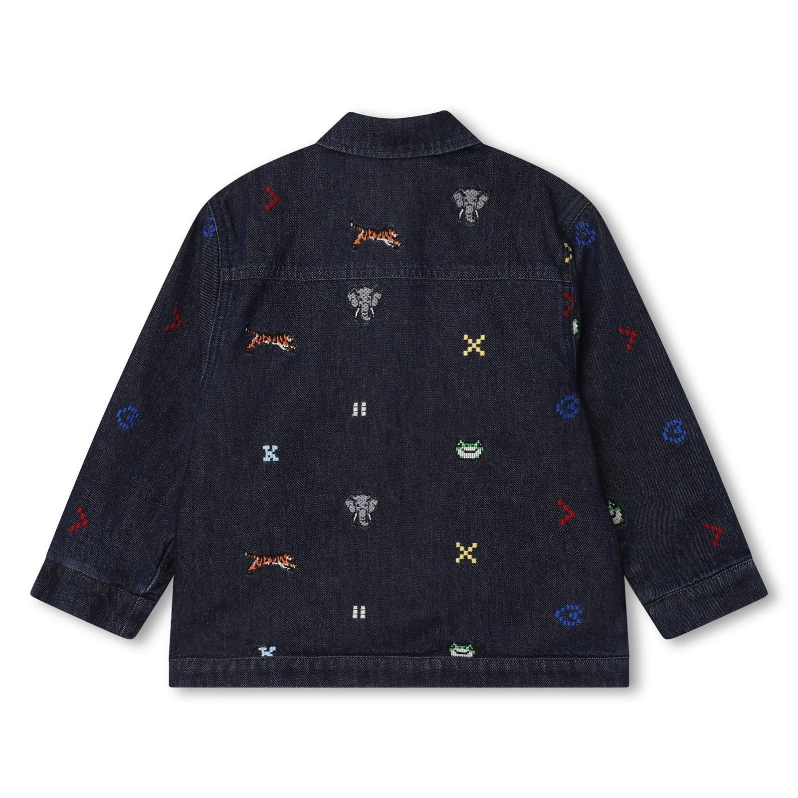 Kenzo Kids, indaco, misto cotone, denim, design ricamato, applicazione con logo sul petto, colletto classico, maniche lunghe, chiusura frontale con bottoni a pressione, due tasche applicate sul petto e orlo dritto. Composizione: Fodera: poliestere 65%, cotone 35%; Esterno: cotone 100%