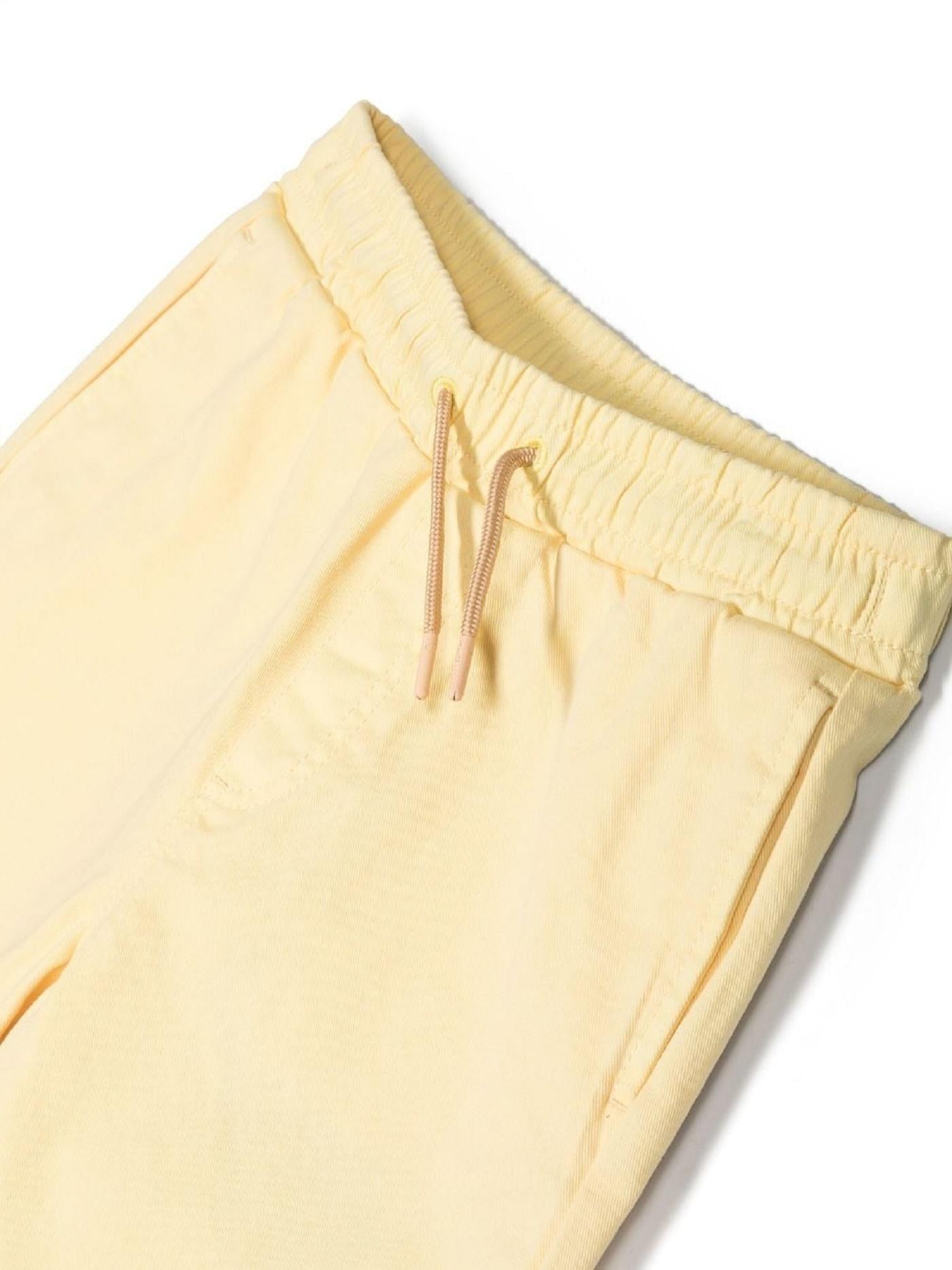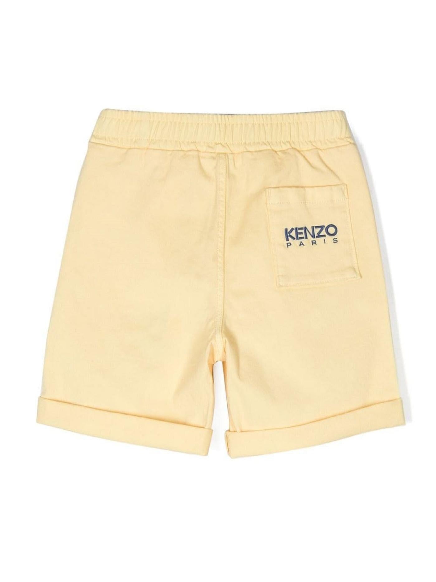 Kenzo Kids, Shorts con ricami, giallo chiaro, vita con coulisse elasticizzata, orlo con piega, due tasche laterali a filetto. Composizione: Esterno: cotone 98%, elastam 2% Fodera: cotone 100%. Istruzione per il lavaggio: lavare in lavatrice